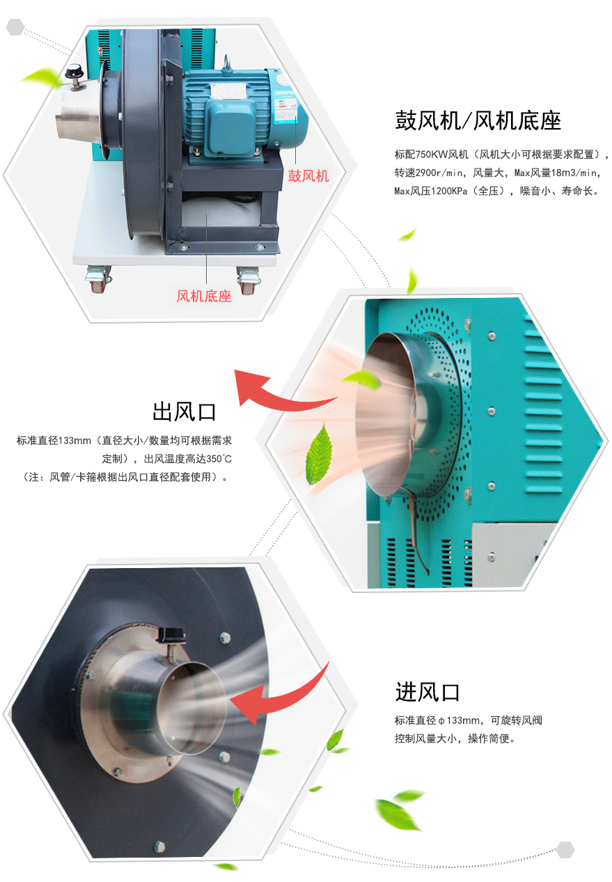 工作效率高 可365天日夜連續(xù)高溫工作,熱風(fēng)機(jī)設(shè)計(jì)安裝多項(xiàng)保護(hù)功能措施,放心使用。 |